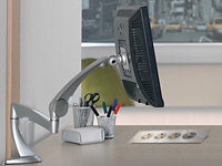 Office furniture can also include lights and other desk accessories such as display arms or screen dividers. Display arms can be used to hold screens or monitors, enabling users to adjust them to different heights and alleviate neck or eye strain. Screen dividers can be used to provide privacy for users at shared desks as well as help productivity by enabling a user to focus more on their work.