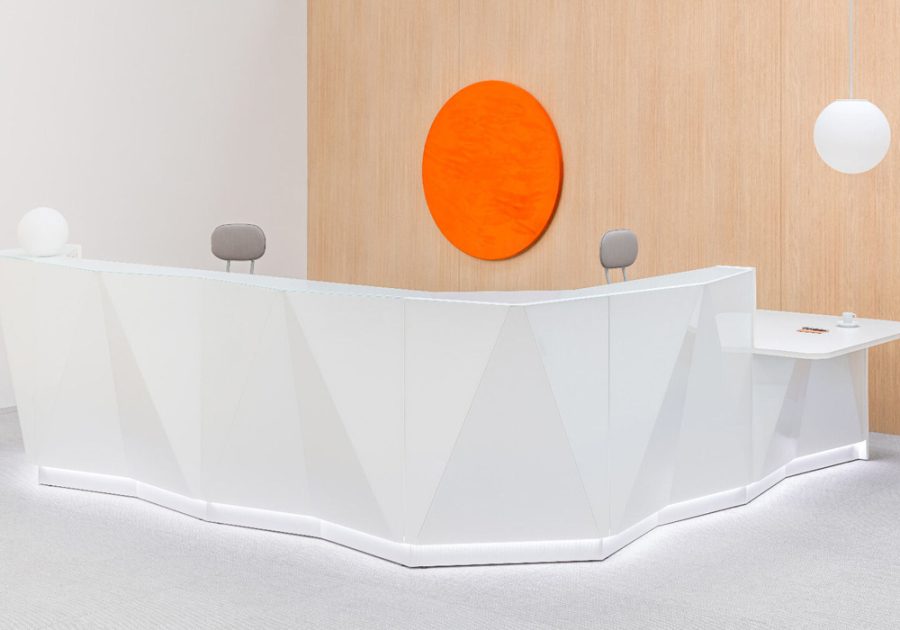 A modular construction allows creating various straight and corner sets. By employing a low module segment with an overhang top, the reception can ease communication with disabled customers. Thanks to these features Alpa series is fulfilling requirements of different types of spaces: from small receptions to vast lobbies.