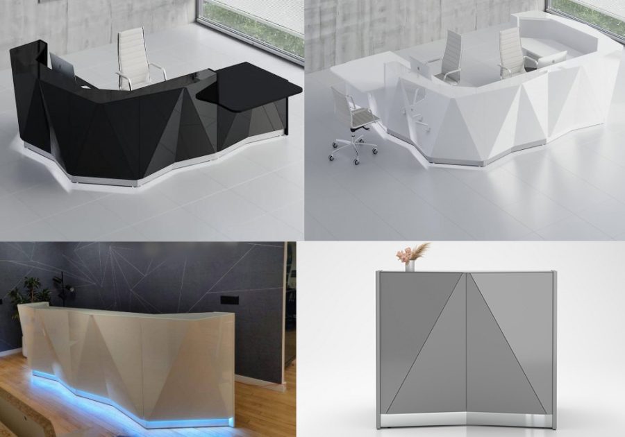 The Alpa reception desks present a form inspired by the majestic mountain range. It’s a very distinctive series simultaneously classical and luxurious. The material is a combination of glass, aluminium and high gloss laminates which come in a variety of colors.