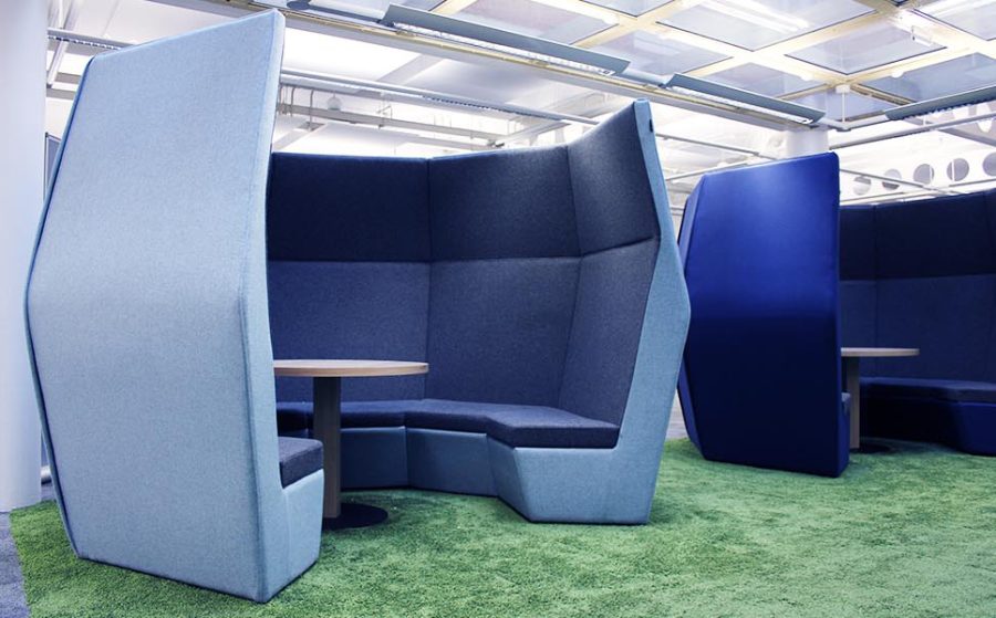 Pod Seating Series Ben from JDD makes a statement. These collaborative dens are great for seating up to 7 people. The Tabatha table fits in beautifully giving a drop down space for