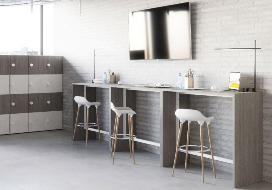 The Détente high tables are ideal to lay out informal work spaces. They could be round or rectangular.