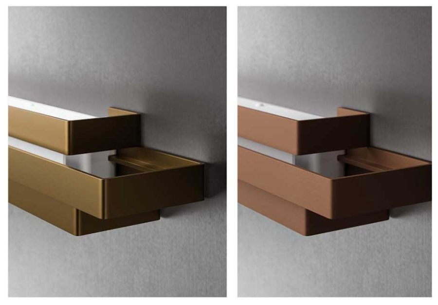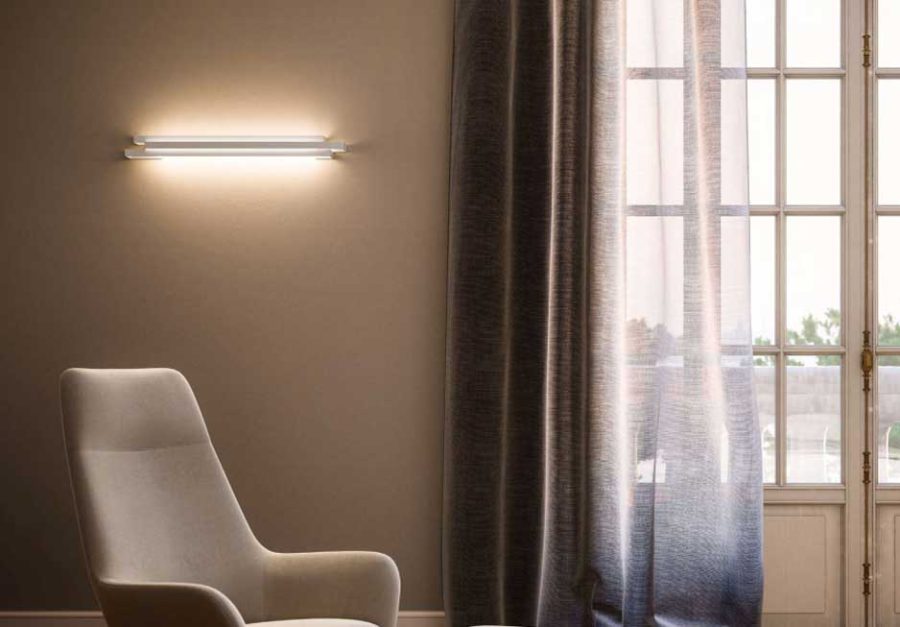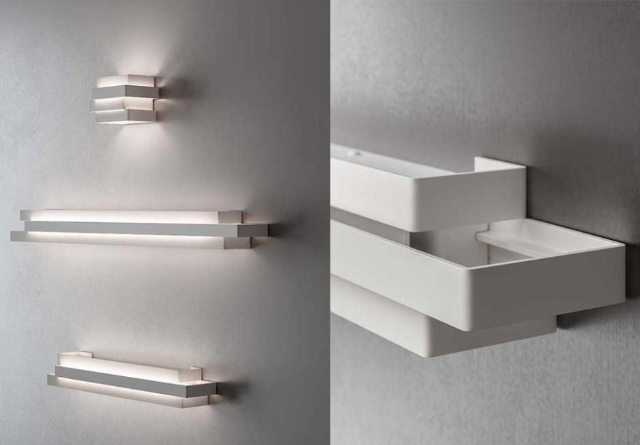 Escape is a wall lighting. It's available in different colours and three sizes, from big to small. Its light glides from one level to another, creating a dynamic and vibrant effect, ideal for lighting in residential and hospitality settings. This lamp has a finish in powder coated aluminium. It has a matt methacrylate diffuser.