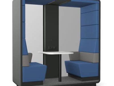 Automatic lighting and silent fan boost the comfort of work. The acoustic pods ensure privacy of conversations and meetings. The Hako pods come in a range of sizes; from phone booth to large meeting pods.