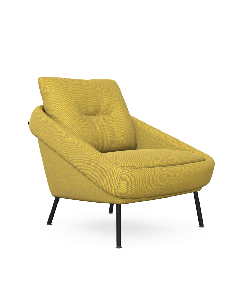 The distinctive shape of the loose backrest cushion with a characteristic horizontal division enhances the ergonomics of the seat and the comfort of the backrest, while giving the armchair an undeniable appeal based on visual clarity.
