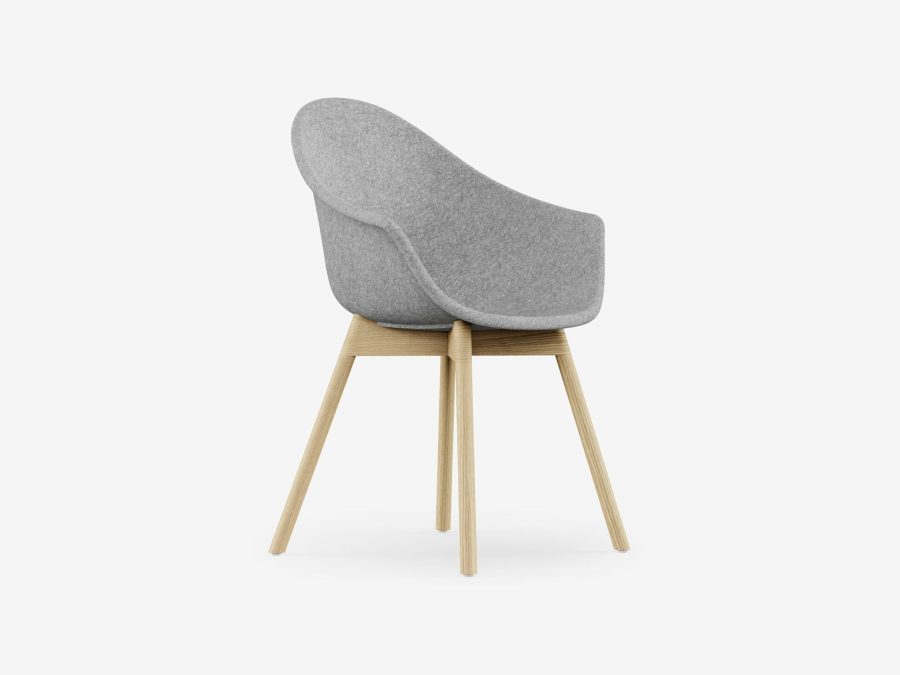 Mamu is available with an upholstery pad for extra comfort, as well as with a soft upholstery cover. It’s refined, a sculptural shell is supported on light leg structures both in wood.