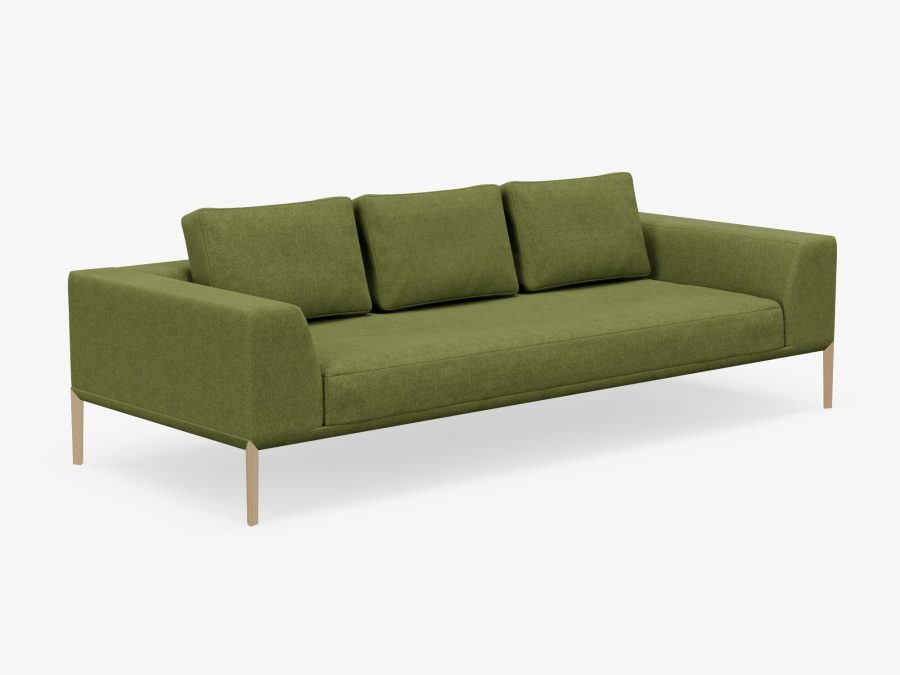 Although not very thick, the seat and backrest elements are exceptionally soft and comfortable. The meticulously finished joint between the legs and the upholstered frame supplies the sofa with a statement detail.