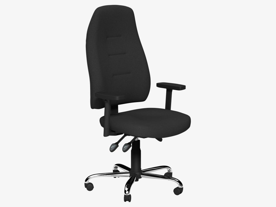 Positura Swivel 3 Lever Chair, Chrome Base, Adjustable Step PU Arms with Sliding Tops