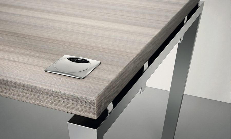 Prestige Executive Desk 25mm Top, 3mm Edge, Square Leg, Black or Chrome Finish.