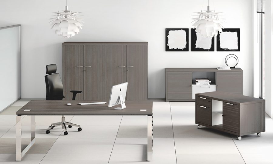Standing out through its pure, straight lines, the Prestige executive desk owes its imposing presence to their superb thick tops 38 mm and their quality and neat finishes. Prestige is characterised by a contemporary design and the combination of its finishes.