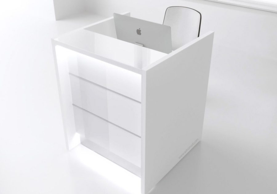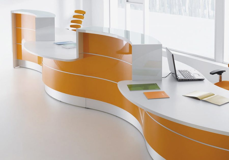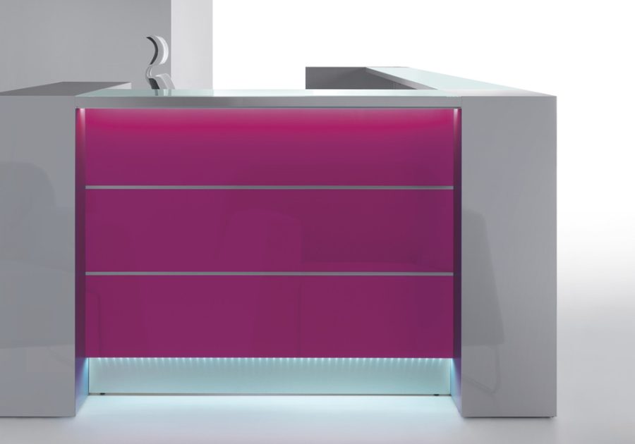 There is an amazing choice of colors with the Valde receptions. The chosen colour can function as a complementary element of the visual identification of the company. The glossy white fronts can indicate tidiness and sterility.
