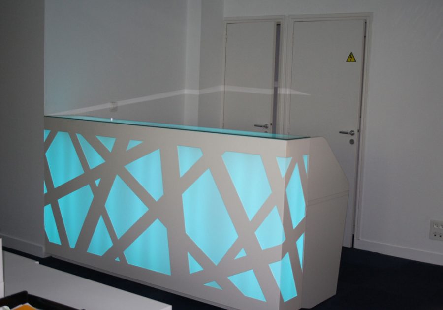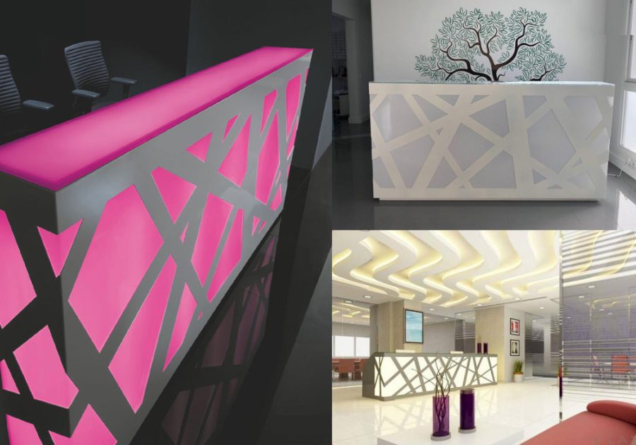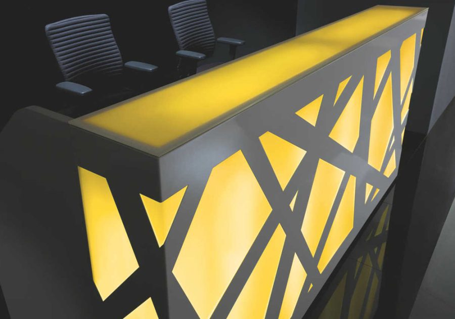 ZIG-ZAG Modular Reception Unit with adjustable LED backlit glass front